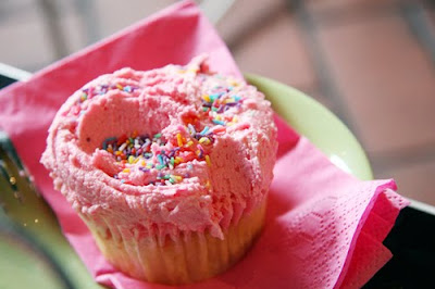 mmmmmm yummy pink frosting with cupcake!! i too had the sinus head ache turn to migraine. I went to bed before 9:00 pm last night. ugh. my sinus on the left side are aching today. hope you get better quickly, must be something blooming in the air.